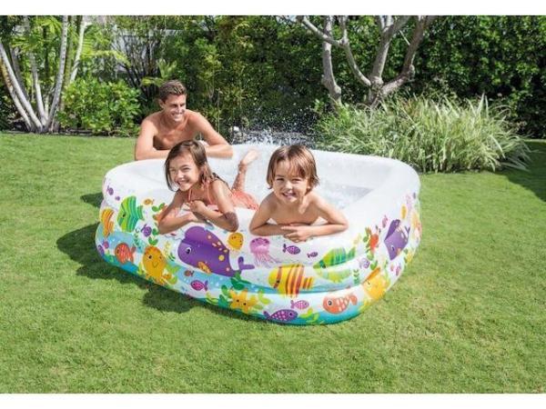 - Бассейн квадратной формы, оформленный красочными изображениями рыбок и других обитателей морского мира, может стать спасением от летнего зноя для ваших детей. Изготовлен из ПВХ толщиной 0,30 мм - качественного и безопасного материала, устойчивого к воздействию ультрафиолетовых лучей, что гарантирует сохранение изначального внешнего вида даже при длительном нахождении на солнце. Имеется сливной клапан.