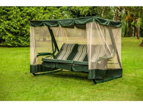 Тент: ткань с водоотталкивающей отделкой 100% п/э плотность 125г/м2, с противомоскитной сеткой (полотно гардинное основовязаное 100% п/э плотность 39г/м2) - фиксация сетки на тканевом тенте осуществляется с помощью горизонтальных и вертикальных застежек - "молний".