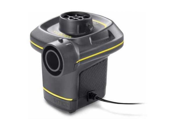 - Электрический насос Intex предназначен для накачивания и сдувания различных надувных изделий без каких-либо усилий. Работает как от сети (220 В), так и от бортовой сети автомобиля (12 В), что делает насос особенно удобным для путешествий.