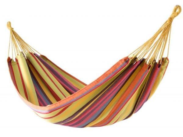 Подвесной гамак - это гарантия отличного времяпровождения на свежем воздухе. В тканевом гамаке можно уютно расположиться с любимой книгой в руках, спрятаться от жары в тени деревьев и подремать. А яркая расцветка поспособствуют отличному летнему настроению.