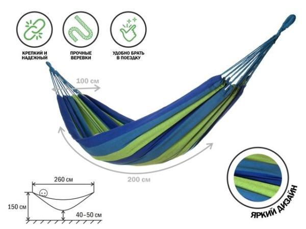 Подвесной гамак - это гарантия отличного времяпровождения на свежем воздухе. В тканевом гамаке можно уютно расположиться с любимой книгой в руках, спрятаться от жары в тени деревьев и подремать. А яркая расцветка поспособствуют отличному летнему настроению.