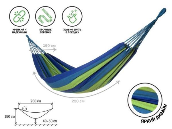 Подвесной гамак - это гарантия отличного времяпровождения на свежем воздухе. В тканевом гамаке можно уютно расположиться с любимой книгой в руках, спрятаться от жары в тени деревьев и подремать. А яркая расцветка поспособствуют отличному летнему настроению.