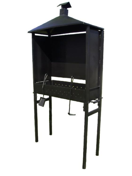 - Мангал сборно-разборный. Комплектация - совок,кочерга. Покрытие:жаровня - краска термостойкая,черная;крыша - краска порошковая.