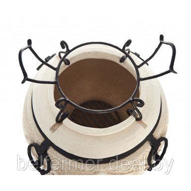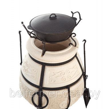 Аксессуар устанавливается в верхней части тандыра, его ножки ставят в специальные отверстия. Изделие обеспечивает казану устойчивое и ровное положение, исключая крен и падение. Подставка обеспечивает повару полную безопасность. Срок службы этого аксессуара ничем не ограничен.