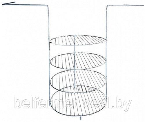 Гарантия 12 месяцев Материал пищевая сталь Габариты товара (ДхВхШ), см 22х33х22 Диаметр, см 22 Длина по ручкам, см 62 Вес, кг 0,6 Бренд Амфора Производство Россия Этажерка тандыров выполняет несколько функций - ее можно использовать как для приготовления буженины, птицы, овощей ( достаточно большой диаметр противеня - практически, гриль решетка), так и в качестве опоры под керамическую посуду для тандыра - гусятницу и приспособление для готовки кур.