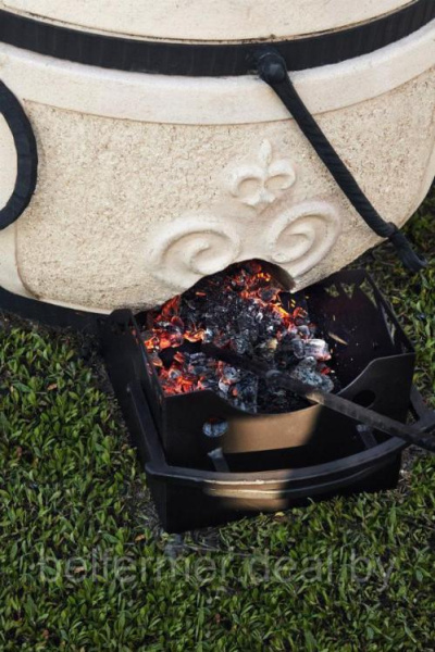 Изделие достаточно объемное, чтобы можно было удалить всю золу при условии, что печь постоянно очищают. Практичный зольник прослужит в течение многих лет. Если в помещении несколько тандыров, то для них достаточно одного зольника.