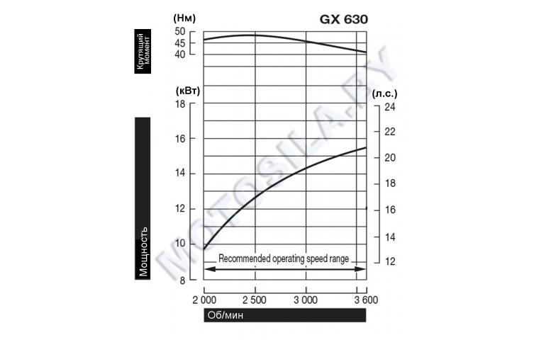 Двигатель GX630 подходит для применения в тяжелых условиях, например, в строительном оборудовании, генераторах и другом промышленном оборудовании.