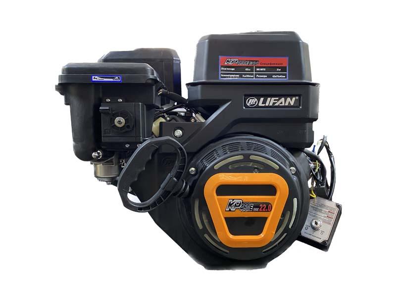 - Двигатель бензиновый Lifan KP460E-R ECC оснащен электронным управлением дроссельной заслонки карбюратора, благодаря чему он стал самым мощным в линейке - 22 л.с. Катушка на 18А позволяет подключать различные приборы мощностью до 216 Вт и производить зарядку аккумулятора. Так же мотор оснащается понижающим редуктором 2:1 с автоматическим сцеплением