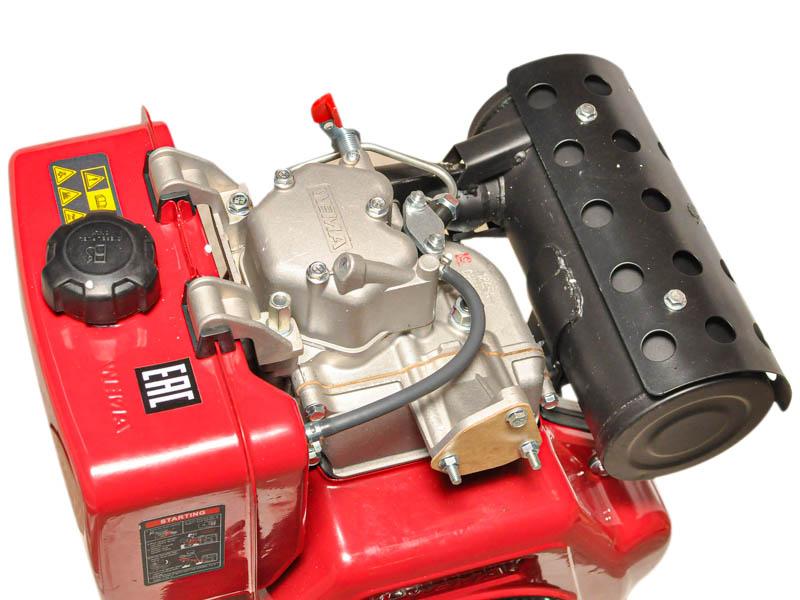 Дизельный мотор Weima WM186F заводится вручную. Он оснащен аварийной защитой по низкому уровню масла в картере и автоматическим регулятором оборотов.