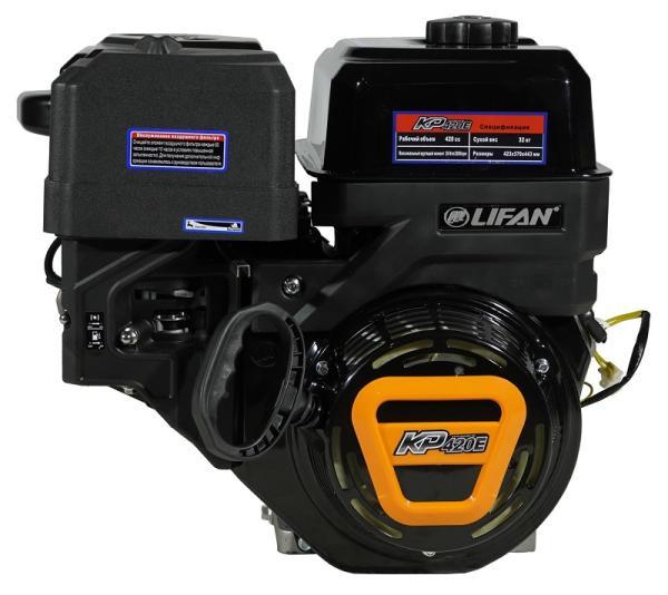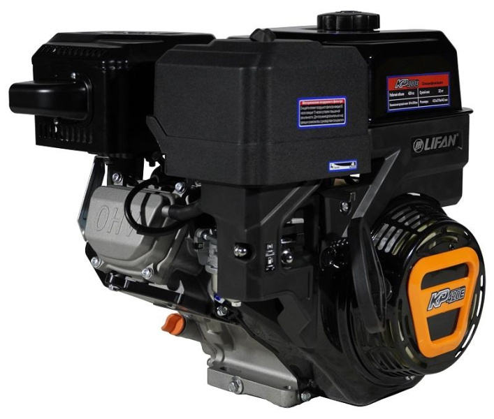 Большой охлаждающий плавник в основании картера для эффективной теплоотдачи.Производитель Lifan Тип двигателя Бензиновый 4-х тактный одноцилиндровый Расположение вала Горизонтальное Диаметр цилиндра, мм 90 Ход поршня, мм 66 Рабочий объём, см3 420 Степень сжатия 8.8:1 Крутящий момент 25 Н.м при 2880 об. в мин. Система зажигания Бесконтактное электронное Запуск Электрический и ручной старт Расход топлива, г/кВт*ч 370 Объем масла в двигателе, л 1.1 Катушка освещения Отсутствует Размеры, мм 465х390х450 Размеры упаковки, мм 485х460х525 Емкость топливного бака, л 6.5 Наличие редуктора Отсутствует Диаметр вала, мм 25 Вес(брутто), кг 37 Обороты холостого хода, об/мин 1350 (+/-50) Гарантия производителя, мес 24 Система подачи топлива карбюратор Вес (нетто), кг 34,1 Длина вала, мм 60 Тип вала LS type Максимальное количество оборотов/мин 4500 Артикул KP420E (190F-TD)