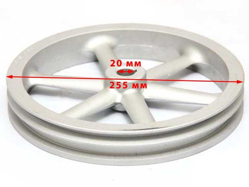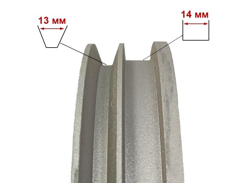 Шкив редуктора ременной пос. 20мм шпонка, 2 ручья, А-13мм, материал - алюминий. Для мотоблоков ЦЕЛИНА-МБ, Каскад.
