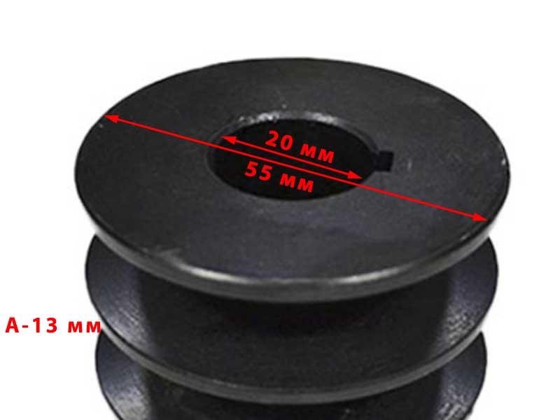 Шкив ременной двухручейковый, посадочное 20мм под шпонку, металлический, ширина ручья 13мм, тип А.