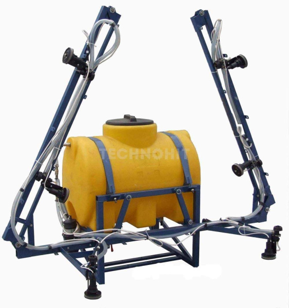 - Навесной опрыскиватель для мотоблока служит для опрыскивания или полива полей. В транспортировочном положении агрегат практически не выходит за пределы трактора. Данный опрыскиватель производится в России и все комплектующие, включая насос так же российского производсва, что дает гарантию надежности и высокого качества.