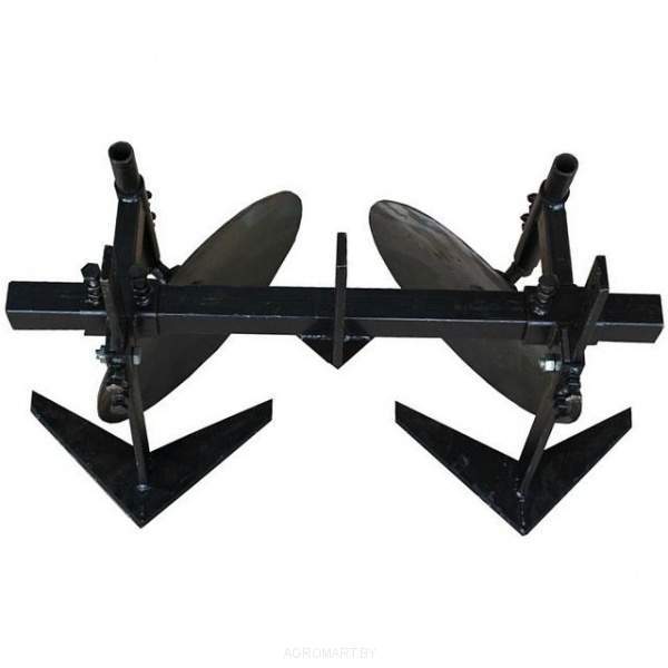 Агрегируется к мотоблоку или минитрактору с помощью винтовой сцепки. Рекомендуется использовать винтовую сцепку для возможности регулировки угла атаки.