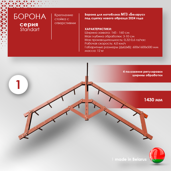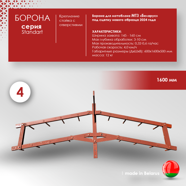 | Борона для всех типов мотоблоков с универсальной стойкой. Ширина 1,6 метра |