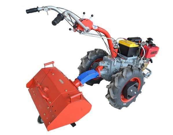 При этом, если на колеса размером 6L*12 (57 см по высоте) угол наклона двигателя является не критичным для работы, то ситуация ухудшается, если установить на мотоблок колеса большего размера. Например 6,5 или 7.00-12. В таком случае увеличивается клиренс мотоблока. И следовательно при работе с фрезой КФ-1С, двигатель задирается вверх еще больше. Качество смазки ухудшается и моторесурс двигателя соответственно уменьшается.