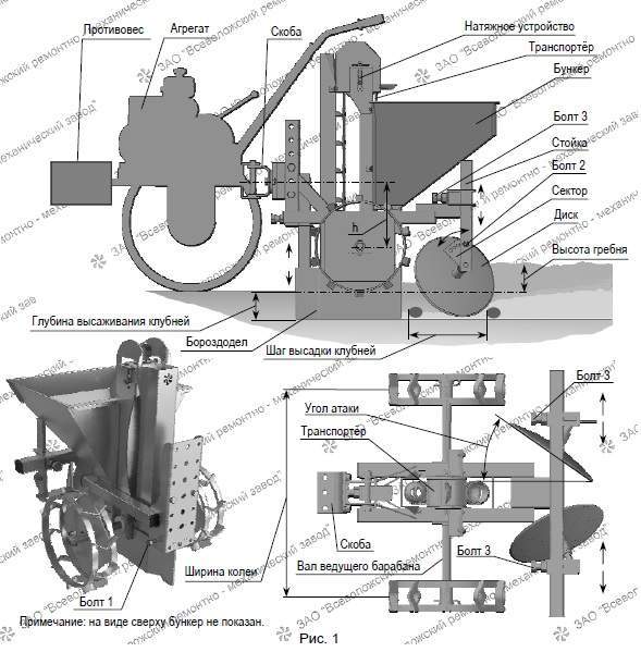 Картофелесажалка предназначена для механизированной высадки клубней картофеля в подготовленную (взрыхлённую) почву на ровной поверхности или с предварительно нарезанными гребнями.