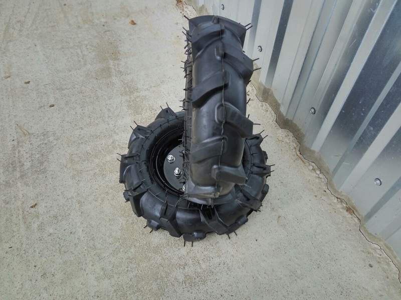 - Колесо размерностью 4х8 дюйма с установленной на него покрышкой и камерой. Подходит для мотоблока, культиватора, прицепа.