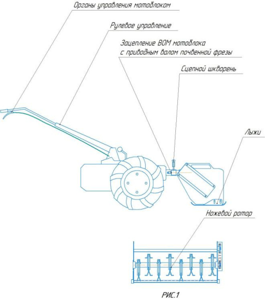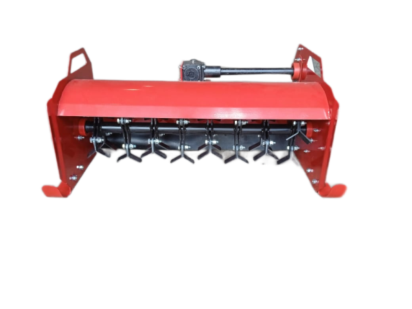 - Мульчер навесной мотоблочный — механическое средство, которое в комплекте с мотоблоками используется для уборки малоконтурных участков в межсезонный период от излишней растительности, в виде бурьяна и сорняков, а также стернового покрова после сбора урожая. Мотоблок с мульчером проходит по участку и измельчает все растения, в том числе и сорняки. Затем их частички(мульча) распределяются по полю и создают защитный слой, это препятствует прорастанию сорняков, перегреванию и переохлаждению почвы, сохранению влаги. Кошение свежей травы данным изделием нежелательно.