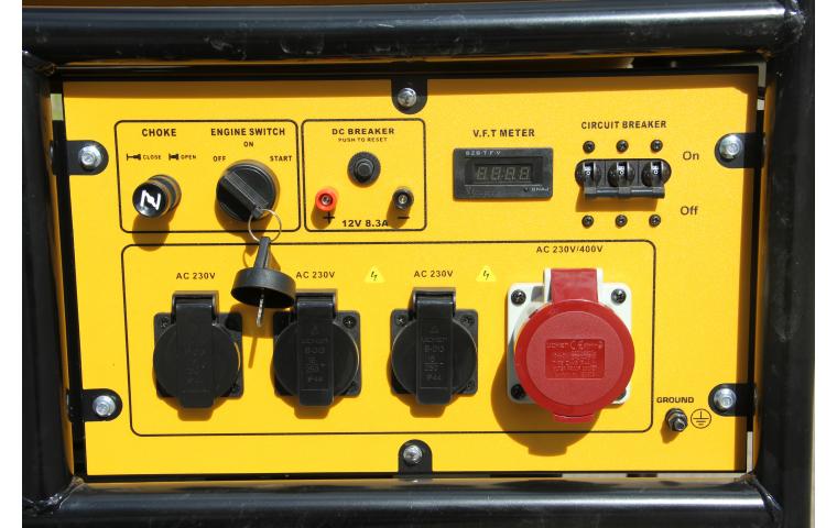 Основные характеристики Тип электростанции открытое исполнение Номинальное напряжение, В 400/230 Номинальная мощность при 400В/230В, кВт 9/5 Максимальная мощность при 400В/230В, кВт 10/5,5 Частота тока, Гц 50 Модель двигателя Rato R670 Тип двигателя 4-х тактный Число цилиндров 2 Мощность двигателя, кВт 15,5 Рабочий объем двигателя, куб.см 670 Вид топлива АИ-92 Объем топливного бака, л 36 Система запуска электрический стартер Уровень шумности работы, дБ 82 Комплектация Комплектация Транспортировочные колеса AVR Автоматический регулятор напряжения B 3 розетки 230В – 16А + 1 разъем CEE 5-штыревой 400В – 16А FM Индикатор уровня топлива O Система защиты двигателя при низком уровне масла TM Термомагнитный прерыватель цепи V Вольтметр Размеры и вес Размеры ( ДхШхВ) 820x595x682 Вес, кг 150 Другое Артикул R10000D-TA Бренд RATO Страна бренда Китай Страна производителя Китай Гарантия 12 месяцев Производитель RATO Напряжение, В 400/230 Максимальная мощность 10/5,5 кВт Номинальная мощность 9/5 кВт Модель двигателя Rato R670 Мощность, кВт 15.5 Габариты, (Д/Ш/В), мм 820x595x682 Объем бака, л 36 Количество цилиндров 2 Тип двигателя 4-х тактный Запуск электрический стартер Уровень шума, дБ 82 Объем двигателя, см3 670 Вес, кг, не более 150 Частота тока, Гц 50 Тип топлива АИ-92