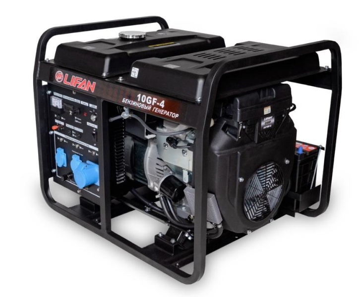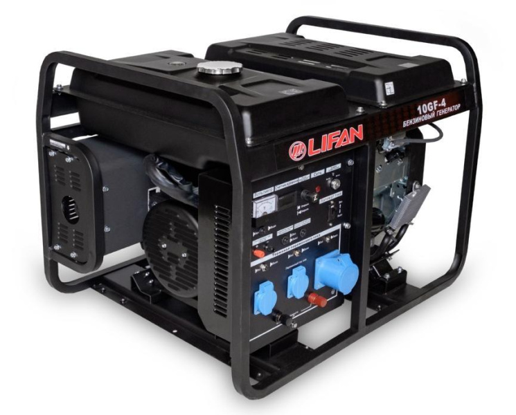 - Современная и надежная модель, позволяющая в случае отключения внешней электросети запитать Ваши электроприборы суммарной мощностью до 11 кВт. В основе генератора используется бензиновый двигатель Lifan 2V78F-2 - мощный и экономичный. Обмотки статора и ротора генератора Lifan 10 GF-4 выполнены из стопроцентной медной проволоки, что значительно увеличивает ресурс работы данной модели. Представленный генератор позволяет работать без дозаправки в течении 4.2 часа.