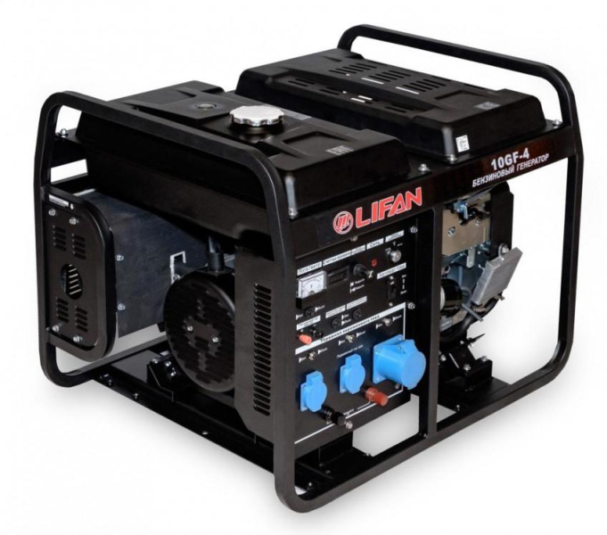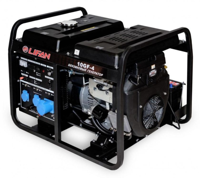 - Современная и надежная модель, позволяющая в случае отключения внешней электросети запитать Ваши электроприборы суммарной мощностью до 11 кВт. В основе генератора используется бензиновый двигатель Lifan 2V78F-2 - мощный и экономичный. Обмотки статора и ротора генератора Lifan 10 GF-4 Eco выполнены из стопроцентной медной проволоки, что значительно увеличивает ресурс работы данной модели. Представленный генератор позволяет работать без дозаправки в течении 4.2 часа.