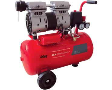Компрессор безмасляный FUBAG OLS 160/24 CM 1.1 (31383) малошумный безмасляный компрессор OLS 160/24 CM1,1 оборудован безмасляной компрессорной головкой, которая обеспечивает получение чистого сжатого воздуха без примесей масла. Электромагнитный обратный клапан, установленный на компрессоре, способствует увеличению производительности. Низкая скорость вращения ротора двигателя (1400 об/мин) гарантирует пониженный уровень шума (60 дБ против 80+ на обычных безмасляных компрессорах) и увеличенный ресурс работы.