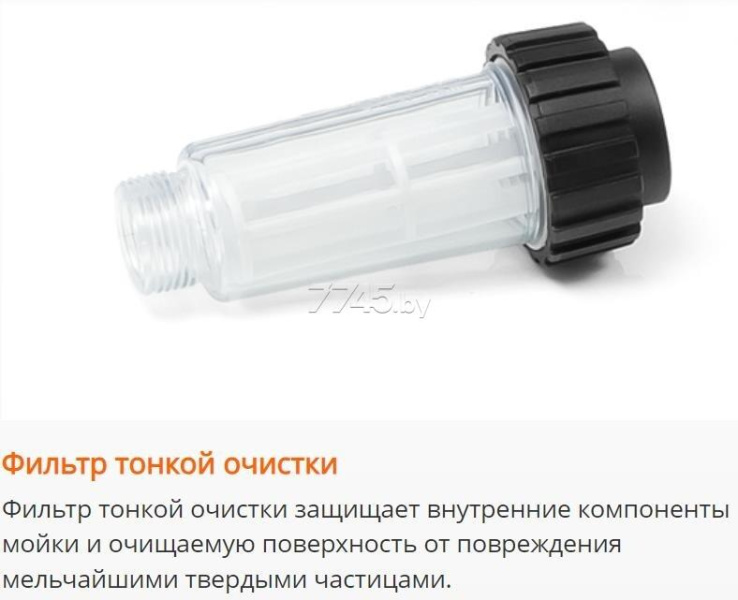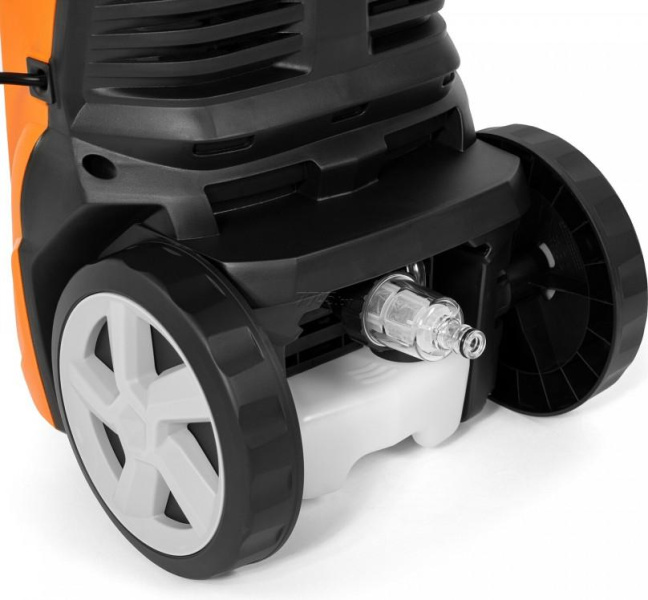 Мойка высокого давления DAEWOO POWER DAW500 (DAW500) оснащена датчиком воды, который автоматически отключает питание помпы при перебоях в водоснабжении. Благодаря этому исключена возможность перегрева электродвигателя и выхода мойки из строя. Функция самостоятельного забора водыпозволяет использовать для питания мойки автономные источники воды, такие как ведро или бочка. Фильтр тонкой очистки защищает внутренние компоненты мойки и очищаемую поверхность от повреждения мельчайшими твердыми частицами. Алюминиевая помпа обеспечивает эффективный отвод избыточного тепла от двигателя и значительно снижает вес устройства. Армированный шланг высокого давления имеет запас прочности, значительно превосходящий мощность насоса, благодаря чему он с легкостью выдерживает пиковые нагрузки в моменты запуска и остановки двигателя, а также обладает устойчивостью к внешнему механическому воздействию. Специальная роторная насадка формирует вращающуюся струю воды, которая воздействует на поверхность значительно сильнее, в сравнении с веерной.