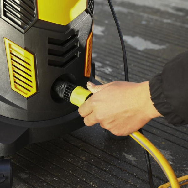 - Мойка может забирать воду из любого подходящего источника - водопровода, садовой бочки или водоема. 8-метровый шланг не ограничивает передвижение пользователя по рабочей площадке.