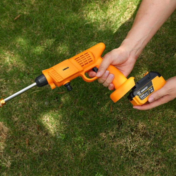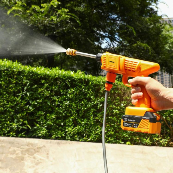 - Мойка высокого давления аккумуляторная DEKO DKCW25, 30 бар, 2x4.0Ач предназначена для мойки транспортных средств, окон, фасадов, очистки загрязненных поверхностей при помощи чистой воды под высоким давлением в бытовых условиях.