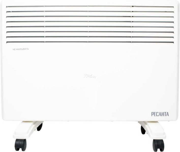 Конвектор РЕСАНТА ОК-1500Е (67/4/13) для обогрева помещений. Состоит из нагревательной части (ТЭН), заключенной в нижней части корпуса со щелеобразными отверстиями снизу и жалюзи в верхней части. Данная конструкция даёт возможность воздуху беспрепятственно проходить внутри конвектора.