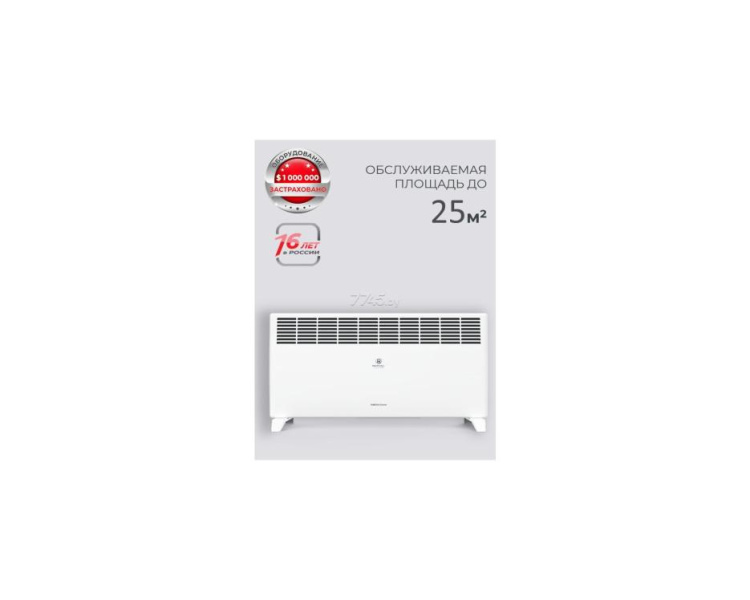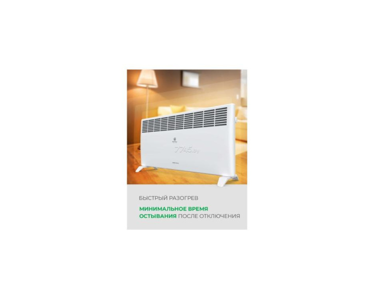 Моментальный разогрев за несколько секунд. Защита от перегрева – безопасный нагрев лицевой панели. Прибор оборудован автоматическим выключателем, который активируется при достижении верхнего предела температуры. Обогреватель выключается автоматически в случае перегрева. Высокоточный механический термостат для настройки и поддержания требуемой температуры в помещении. Прибор «запоминает» комфортную для вас температуру и будет поддерживать её, автоматически включаясь и выключаясь. Функция «Рестарт» позволяет при незапланированном отключении электроэнергии автоматически включить прибор с сохранением действующих на момент отключения настроек. Электрический конвектор легко устанавливается на пол с помощью ножек, а также крепится на стену.Производитель ROYAL CLIMA Тип конвектор Комплектация От завода изготовителя Режимы работы есть Управление Механическое Площадь обогрева, м² 25 Потребляемая мощность 2000 Вт Гарантия от Официального производителя