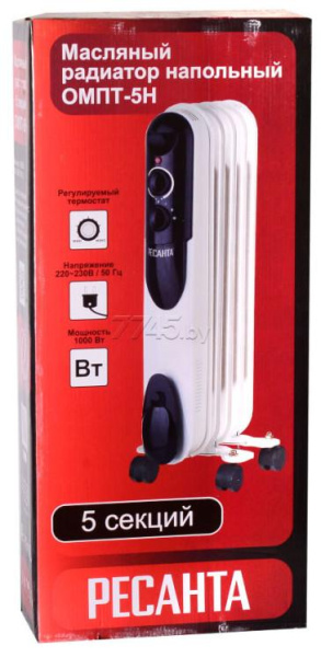 Производитель РЕСАНТА Тип масляный Комплектация От завода изготовителя Режимы работы есть Управление Механическое Площадь обогрева, м² 10 Потребляемая мощность 1000 Вт Гарантия от Официального производителя