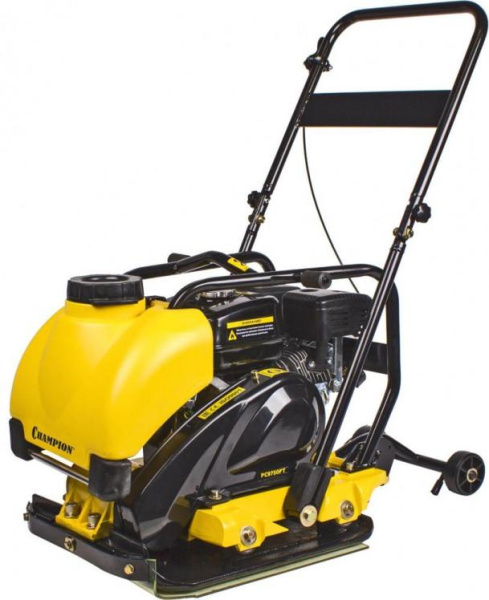 - CHAMPION PC9750FT - мощная виброплита для трамбовки песчаных смесей и укладки тротуарной плитки. Оборудована баком для воды на 12 л.