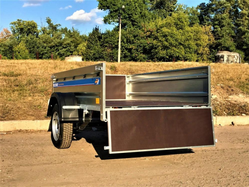 Размер кузова легкового прицепа 2,25 х1,29 метра, борта оцинкованные высотой 430 мм из металла 1 мм.