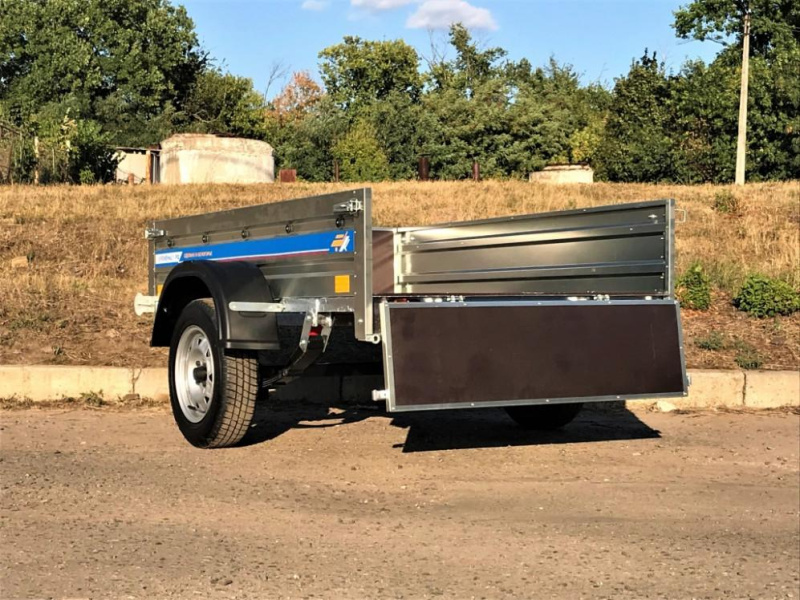 Размер кузова легкового прицепа 2 х1,29 метра, борта оцинкованные высотой 350 мм из металла 1 мм. Внутренние размеры кузова 1950 х 1230 мм. На полу влагостойкая бакелитовая фанера толщиной 9 мм. ламинированная и многослойная, покрытие противоскользящее. Открывается задний и передний борт. Задний и передний борт усилен фанерой и имеют замки для открывания.
