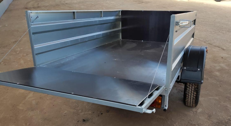 Откидывающиеся передний и задний борта облегчают процесс погрузки и позволяют перевозить грузы длиной до 3,5 м. (1 м сзади и 0,5 м спереди), что делает этот прицеп более универсальным.