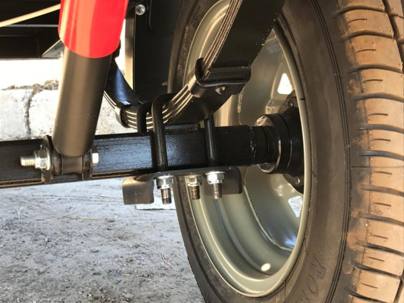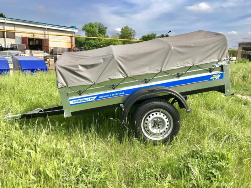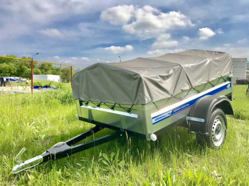 Прочные рессоры позволяют преодолевать любые ухабы на дороге без ущерба для груза. В комплект прицепа входит непромокаемый тент из ПВХ высотой 30 см от борта.