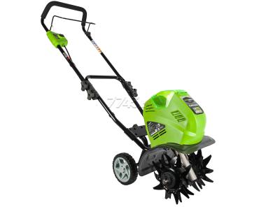 Культиватор аккумуляторный GREENWORKS G40TL 40V (27087) предназначен для рыхления почвы в рядках и междурядьях. Позволяет эффективно рыхлить почву, благодаря рабочей глубине в 12,7 см и ширине 26 см. Лёгкое управление и маневренность культиватора обеспечивают 6" колёса и удобная складная ручка. Благодаря питанию от 40V аккумулятора культиватор обеспечивает долгую автономную работу (около 60 минут). Аккумулятор и зарядное устройство в комплект поставки не входят. Производителем не предусмотрено использование навесного оборудования.
