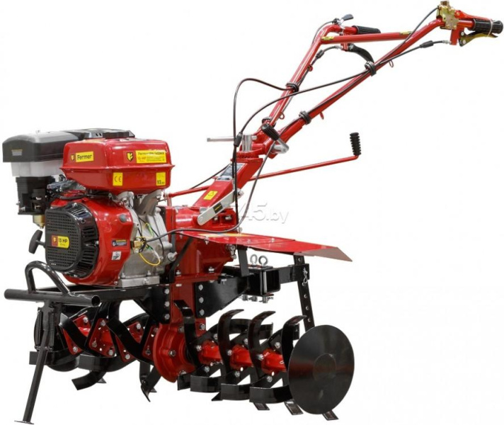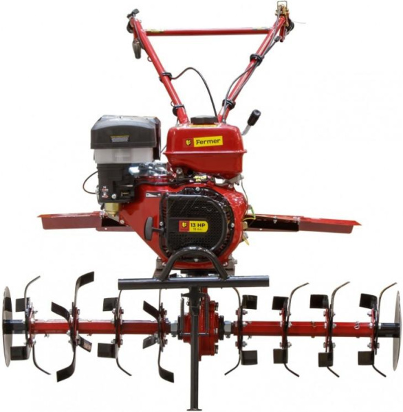 Культиватор бензиновый FERMER FM-1412MX (FM-1412MX-65) имеет мощный бензиновый двигатель 13 л.с. Шестигранный вал редуктора 32 мм. Универсальная сцепка для присоединения навесного оборудования. Втулки для колес со съемными поворотными муфтами для облегчения маневрирования агрегатом. Диски защиты растений для фрез в комплекте. Тип моторного масла SAE 10W-30, SAE 10W-40.