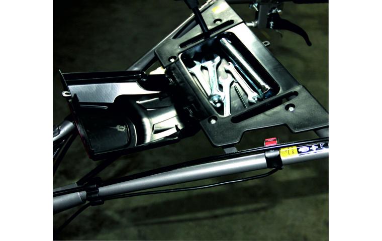 Профессиональный мотокультиватор Огромная мощность(16 л.с.) Чугунный обслуживаемый шестеренчатый редуктор Сцепление из метелокерамических дисков Окраска металлических деталей методом нанесения порошкового покрытия Инновационная система сцепления Встроенный электростартер, генератор, аккумулятор Запуск двигателя ключом замка зажигания Две галогеновые фары Защитный пластиковый капот Два защитных металлических крыла Отсутствие ремней в конструкции мотоблока Большой ресурс мотора Большая ширина обработки (до 150 см.) Четырехтактный двигатель Верхнее расположение клапанов Коробка передач(2 вперед/1 назад) Пневматические колеса большого диаметра (6/12 дюймов) Достаточный для обработки целины вес(120 кг.) Регулируемый руль Возможность использования транспортировочной тележки Грузоподъемность(до 1000 кг) Широкий спектр навесного оборудования Улучшенные характеристики двигателя и редуктораугунная гильза цилиндра Уникальный дизайн Низкий расход топлива Реверс заднего хода позволяет делать разворот удобным, облегчает работу в труднодоступных местах 40 ножей из высоколегированной стали обеспечивают высокое качество обработки почвы Эргономичные рукоятки выдерживают большие нагрузки при работе на целинной почве Воздушный фильтр (заправляющийся маслом) с двойной системой очистки, которая увеличивает срок службы двигателя Кнопка глушения двигателя на рукоятке