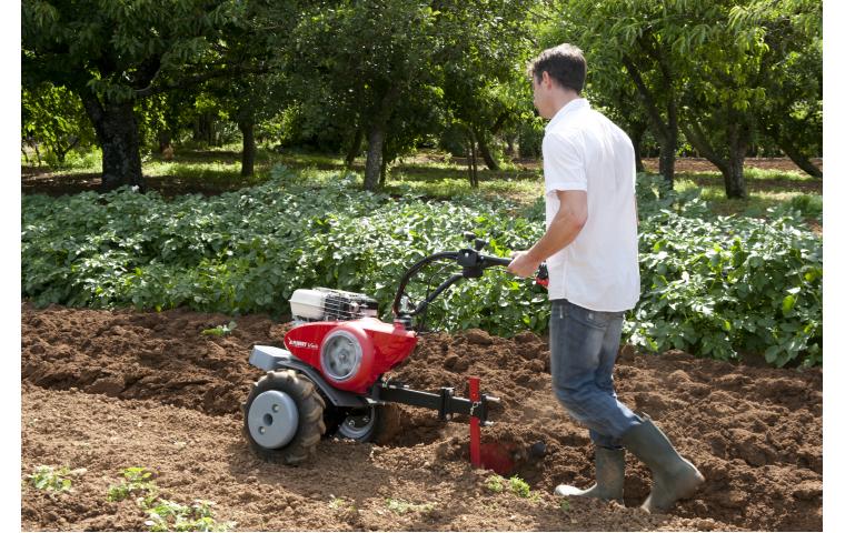 Разработана совместно с ведущим французским автоконцерном. Дает возможность выбирать оптимальный режим работы в зависимости от условий работы (типа почвы, навесного оборудования): движение вперед с вариативным изменением скорости вне зависимости от нагрузки, движение вперед с с вариативным изменением скорости вне зависимости от нагрузки на пониженной передаче, задний ход. Скорость регулируется от 28 до 165 об/мин. "Линейное" последовательное управление скоростью движения: реверс центрирован между 1 и 2 передачей, поэтому он доступен в любой момент. Четырехтактный двигатель Honda GX160, мощность 5,5 л.с. с верхним расположением клапанов (Япония)