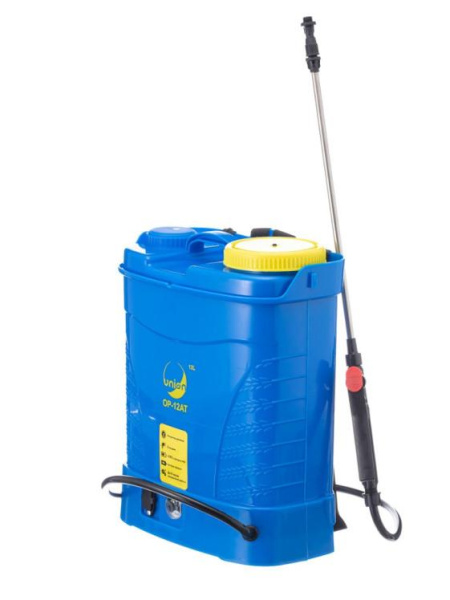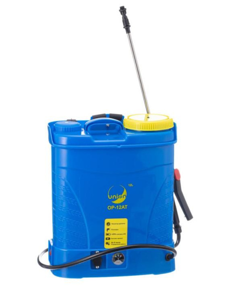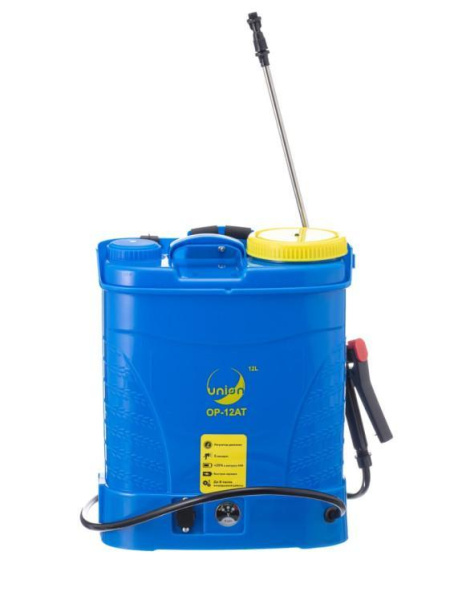 Опрыскиватель аккумуляторный UNION ОР-12АТ - компактный и легкий аппарат для садовых растений и саженцев, внесения удобрений, гербицидов или подкормки. Также применяется при дезинфекций помещений, мытье окон и фасадов, ремонтных работах.