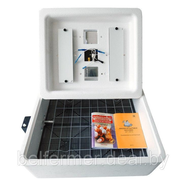 - инкубатор- паспорт изделия (инструкция по настройке)- картонная упаковка- пособие по инкубацииНапряжение, В 220 (50Гц) Терморегулятор Цифровой с табло Поворот яиц Автоматический