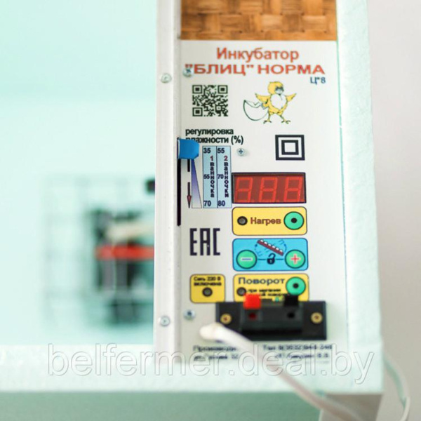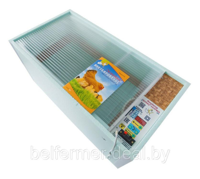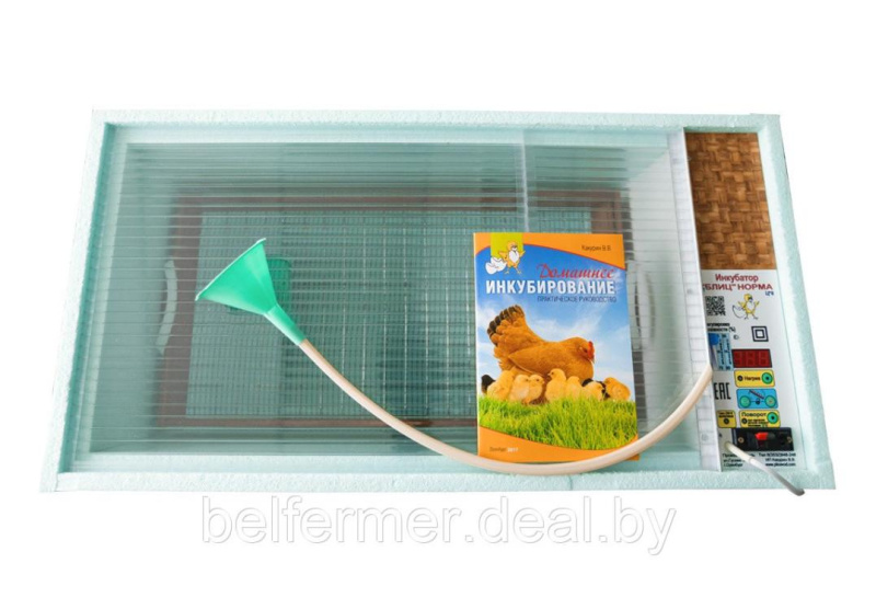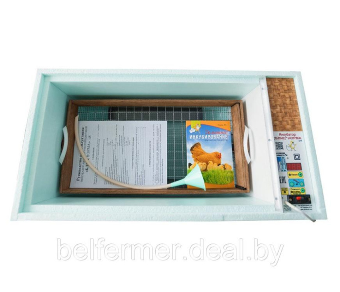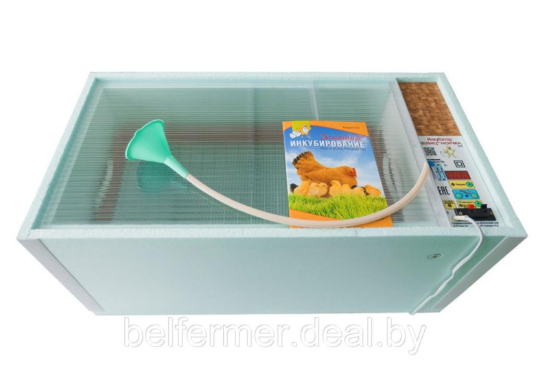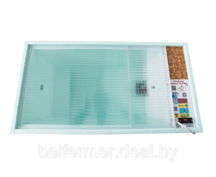 Вместимость яиц, шт. 72 куриных / 50 гусиных, утиных / 200 перепелиных Способ переворота яиц Автоматический Терморегулятор Цифровой с табло Подключение аккумулятора Есть Гигрометр (измеритель влажности) Есть Вентилятор Есть Напряжение сети, В 220 (50Гц) Потребляемая мощность, Вт 60 Разброс температуры в инкубаторе, Cº 0,1 Регулировка температуры, Cº 33-45 Габариты (длина/ширина/высота), мм 750/365/330 Масса нетто, не более, кг 4,5 Инкубатор Блиц- Норма 72 представляет собой короб прямоугольной формы с размещенной на боковой стенке панелью управления. Корпус выполнен из пенополистирола, который обеспечивает необходимый уровень теплоизоляции. Сверху конструкция закрывается прозрачной крышкой, а внутри расположен лоток для яиц и две пластиковые ёмкости для воды.