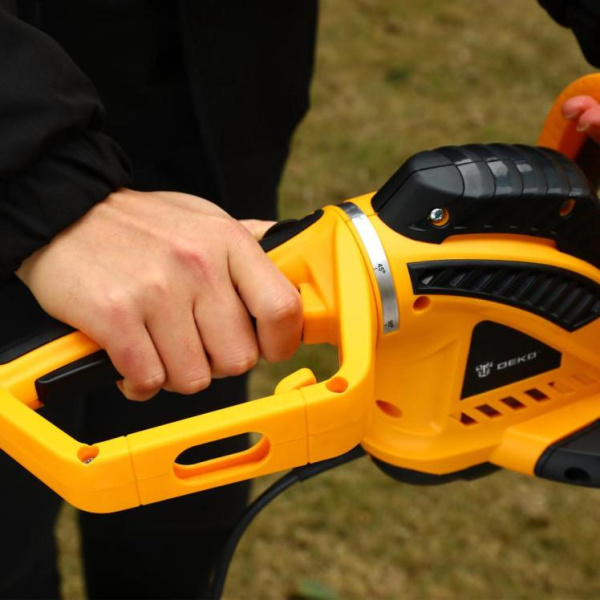 - Кусторез электрический DEKO DKBC800, 800Вт, 550мм используется для обрезки ветвей, живых изгородей, кустов и почвопокровных растений на приусадебных и частных садовых участках.