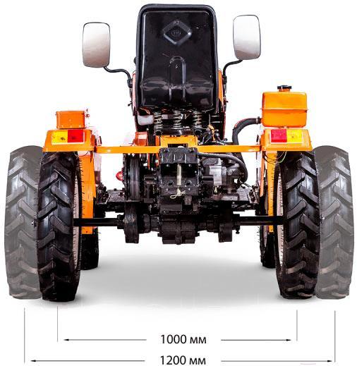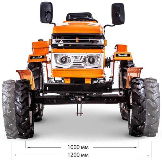 Регулируемая колеяШирину колеи в данной модели, как и в предыдущей его модификации можно регулировать. Благодаря этой функции на минимальной колее мы получаем маневренный трактор с помощью которого можем работать в ограниченном пространстве. При установке колеи в 1200 мм вы с лёгкостью обработаете свой участок. Регулировка колеи в данной модели осуществляется очень просто и не требует специальных навыков.