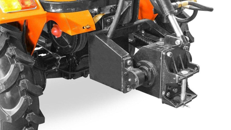 Так как в минитракторе установлена 3-х точечная система навесного оборудования, то данный трактор оборудован ещё и ВОМом скорость вращения которого – 540 оборотов в минуту. На такой скорости вращения можно использовать большое количество агрегатов: картофелекопалок, опрыскивателей, почвофрез, разбрасывателей удобрений, косилок и ещё более десятка видов навесного оборудования.