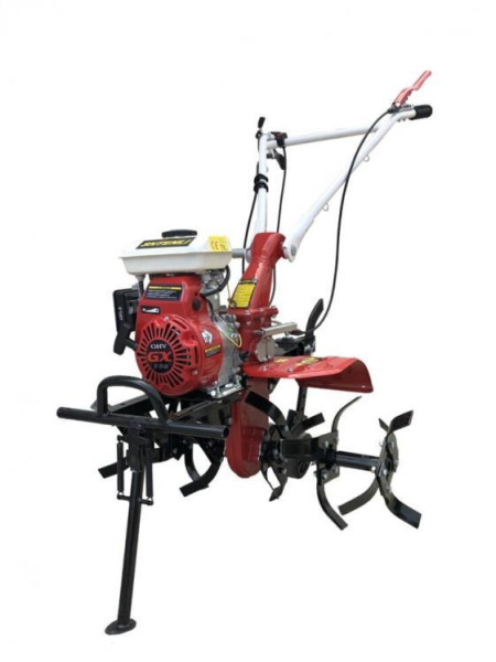 Достойный внимания вариант - мотокультиватор Groff 1000 – самоходная машина для подготовки почвы под посадку садовых и огородных культур, а также обработки посевов. Бензиновый двигатель мощностью 6 л. с. вращает фрезы, которые разрыхляют почву и перемещают агрегат по участку. Управление культиватором осуществляется идущим за ним оператором с помощью двух ручек. Обработка почвы осуществляется ножами фрез, которые при вращении отрезают пласты почвы, крошат и перемешивают их. Мотокультиватор Groff 1000 поставляется без колес. Вала отбора мощности нет. Двигатель справится с обработкой дачного участка даже с умеренной запущенностью по сорнякам.