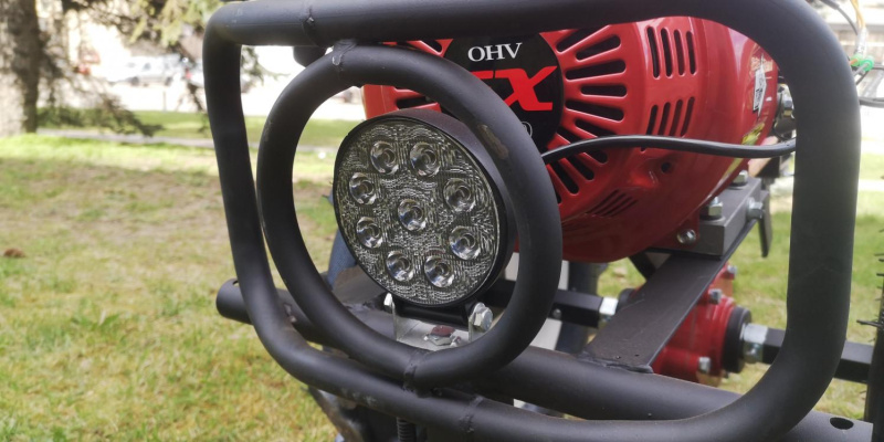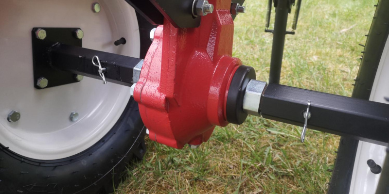 В задней части редуктора мотоблока имеется вал отбора мощности с прямым выходом от двигателя со шпоночным креплением. Он позволяет агрегатировать к мотоблоку активное навесное оборудование – роторные косилки, картофелекопалки и прочее, что значительно расширяет спектр работ, выполняемых с помощью мотоблока.